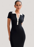 - Design: Features a sophisticated turn-down collar and a sleek sheath silhouette