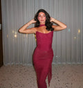 Make an unforgettable entrance with the Aniyah Strapless Bodycon Maxi Dress, a stunning blend of elegance and allure. Designed to sculpt and enhance your silhouette, this dress offers a sleek and sophisticated look perfect for special occasions. Its rich burgundy hue and timeless design ensure effortless glamour wherever you go.