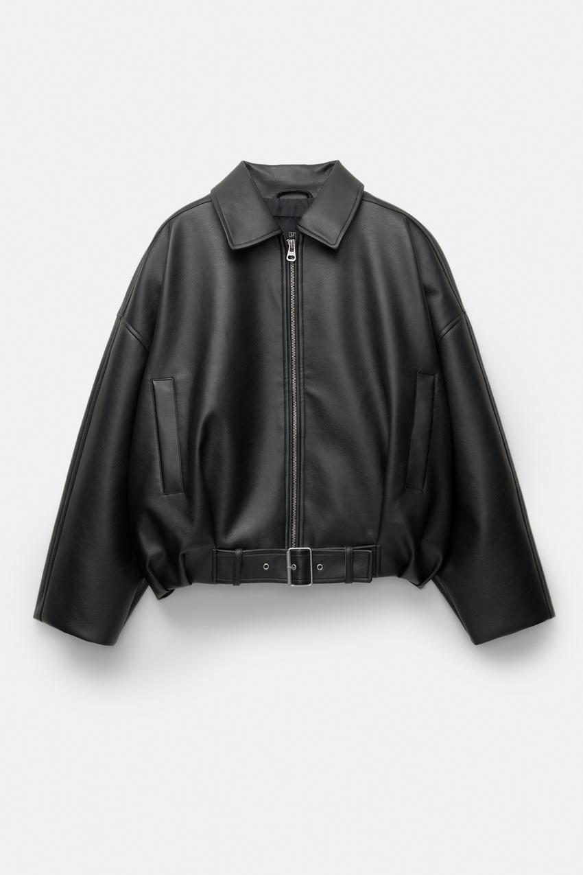 Crafted in buttery-soft vegan leather, this oversized jacket features a sleek zip-front closure and chic belted hem, allowing you to define your style as you please.