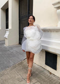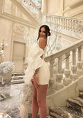 Turn heads in the Bianca Flower One Shoulder Mini Dress, a masterpiece of elegance and statement style. Crafted from structured organza, this dress features an oversized three-dimensional floral appliqué that adds a bold yet delicate touch. Designed for special occasions, its lightweight feel and sculptural silhouette make it a true showstopper.