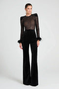 Turn heads effortlessly in the Feather Jumpsuit, where elegance meets comfort in a statement-making design. Perfect for nights out, special events, or adding a bold touch to your everyday look.