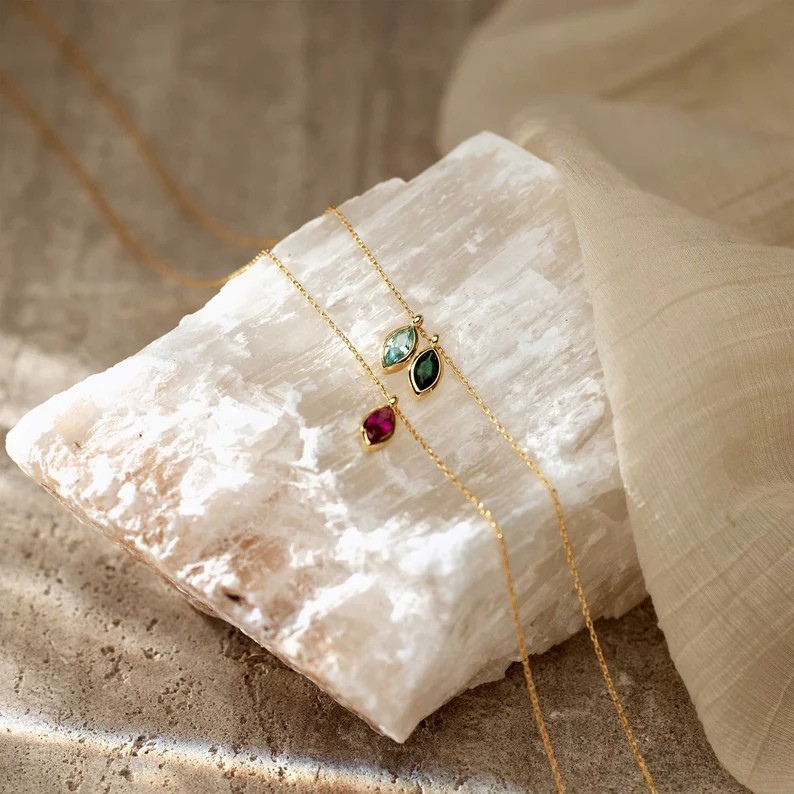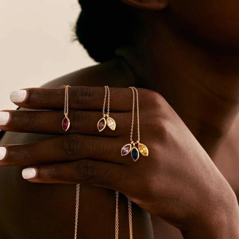 - Customised with marquise-cut birthstones for a unique touch.