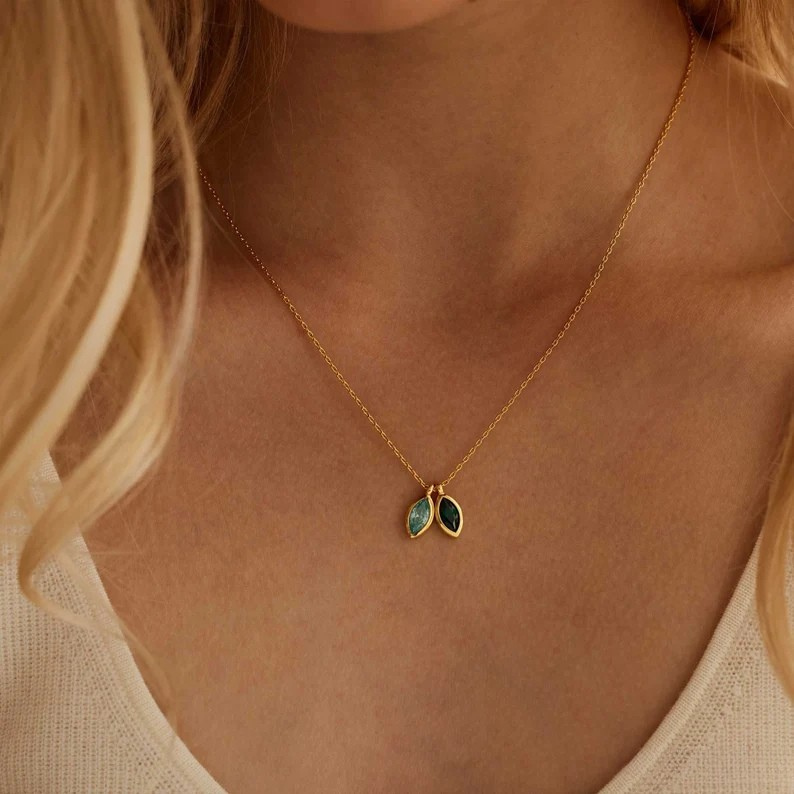 Maddalene Custom Leaf Birthstone Necklace